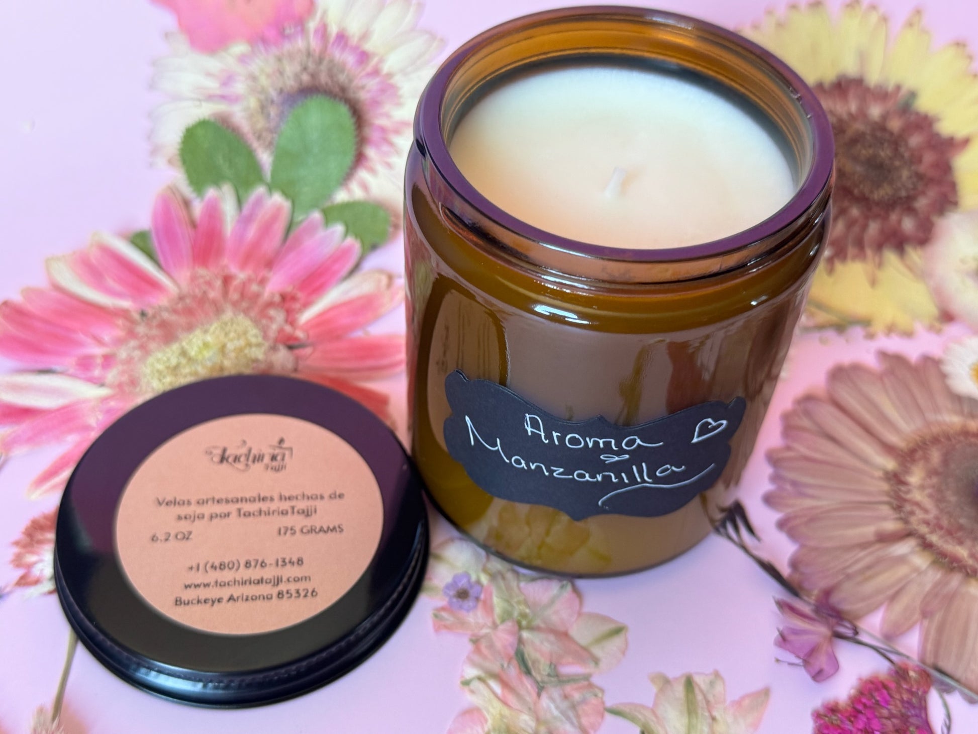 Estas velas artesanales son echas a mano con 100% ceda de soja 7.2OZ/204G en un frasco amber de vidrio.